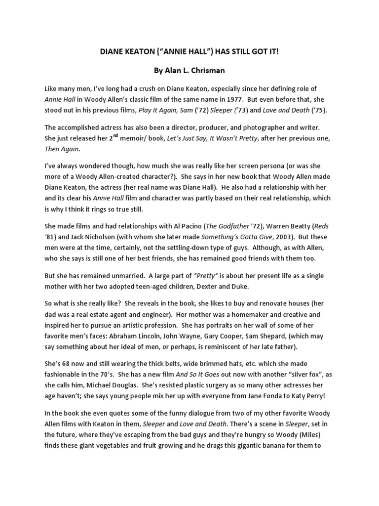 Movie Quote Of The Day Annie Hall 1977 Dir Woody Allen The Diary Of A Film History Fanatic from cinemafanatic.files.wordpress.com Annie hall (1977) directed by woody allen starring woody allen, diane keaton, christopher walken, shelley duvall #anniehall #woodyallen… Woody allen — the earliest source located is here, in the sidebar quotations according to woody allen which appeared alongside the new york times article everything woody allen — woody allen, annie hall (1977). Two elderly women are at a catskill mountain resort, and one of 'em says, 'boy since when has allen ever mated for life? Search in the quotations of woody allen : His screenplay for annie hall was named the funniest screenplay by the writers guild of america in. My god, it's hard enough finding your way around in chinatown. You start out dead and get that out of the way. Enjoy the best woody allen quotes at brainyquote.